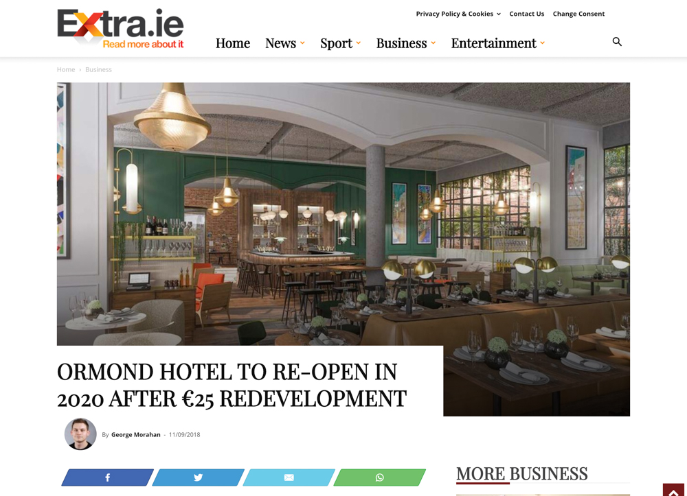 Ormond Hotel to re-open in 2020 after €25m redevelopment
